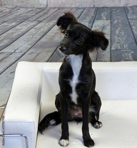 Adorable Small Cute Black Dog With White Chest Stock Photo Adobe Stock