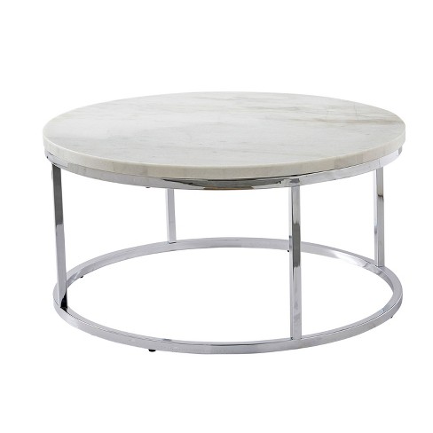 Amazon Com Convenience Concepts Gold Coast Faux Marble Round Coffee Table White Faux Marble Silver Frame Furniture Decor