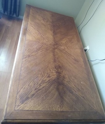 The table was purchased in San Antonio at Karotkins Furniture Store. The Style is 1673-27 and Serial 4873020. The oval top features rounded edges that hinge to lay flat and each with a handle.