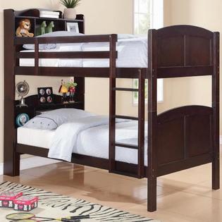 Roundhill Furniture Solid Wood Convertible Bunk Bed With Bookcase Headboard Twin Cheap Low Storage Platform Bed