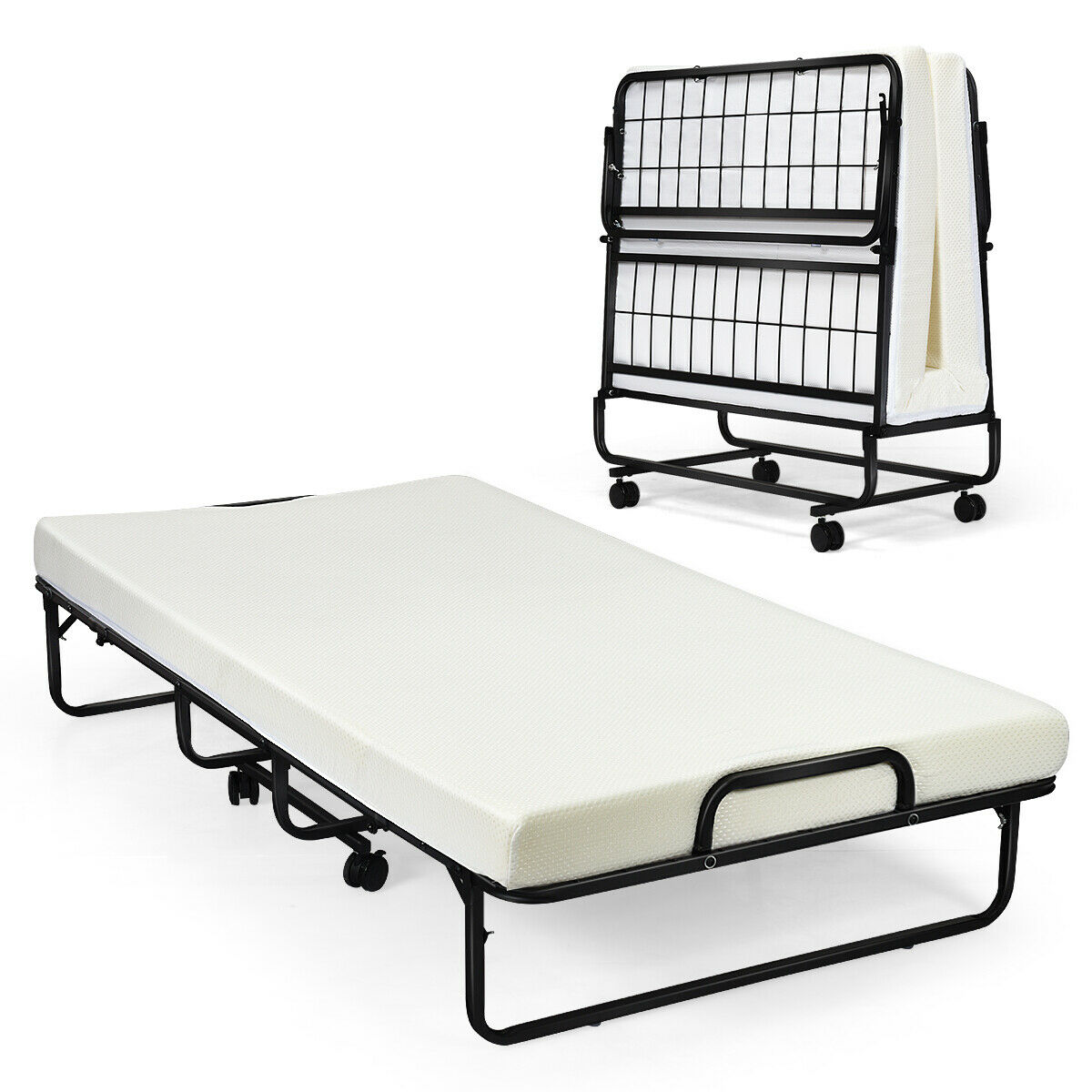 The single-size bed folds to 55 inches while the twin-size bed folds to 7 inches. This guest memory foam bed has an ultra-plush honeycomb cover that provides the ultimate comfort. Leisuit Rollaway Guest Bed Cot Fold Out Bed - Portable Folding Bed Frame with Thick Memory Foam Mattress for Spare Bedroom.
