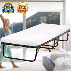 Guest Bed Portable Fold Roll Away Sleeper Cot Memory Foam Mattress Plush Cover Roll Away Beds Folding Guest Bed Guest Bed