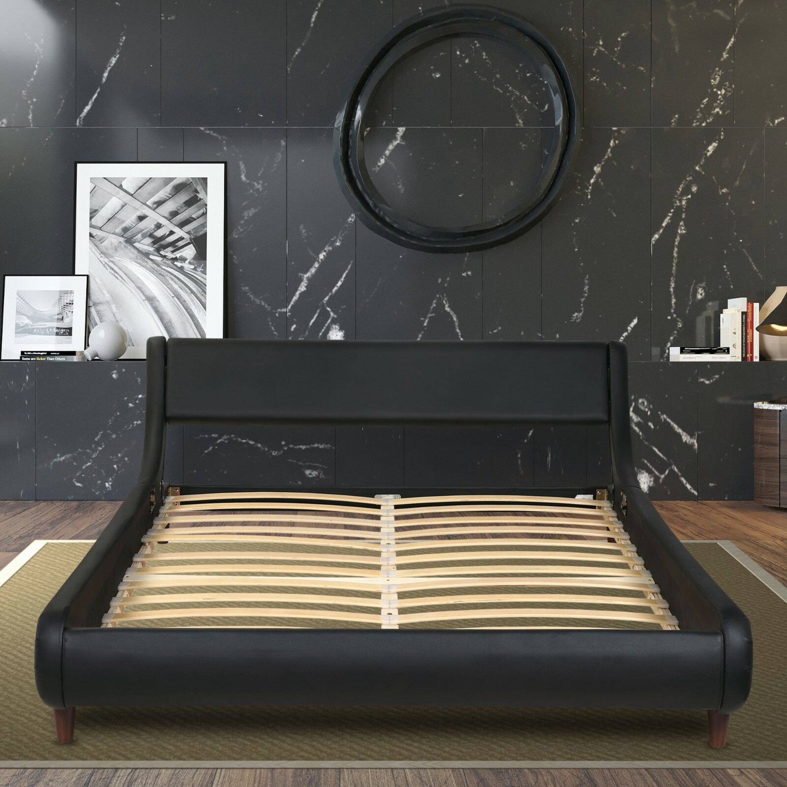 Full Metal Frame Bed With Leather Upholstered Headboard Black Benzara Target